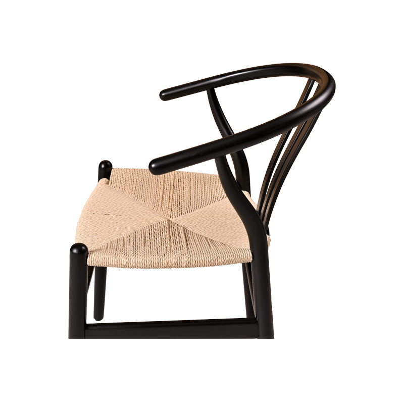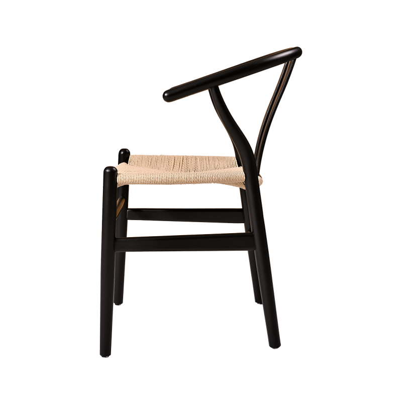 La sedia da ristorante in legno Wishbone è disponibile in due varianti di colore: nera e naturale. Ciò consente di adattare le sedie allo stile e all’arredamento del proprio ristorante o caffetteria.