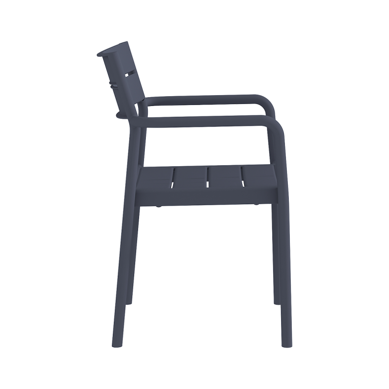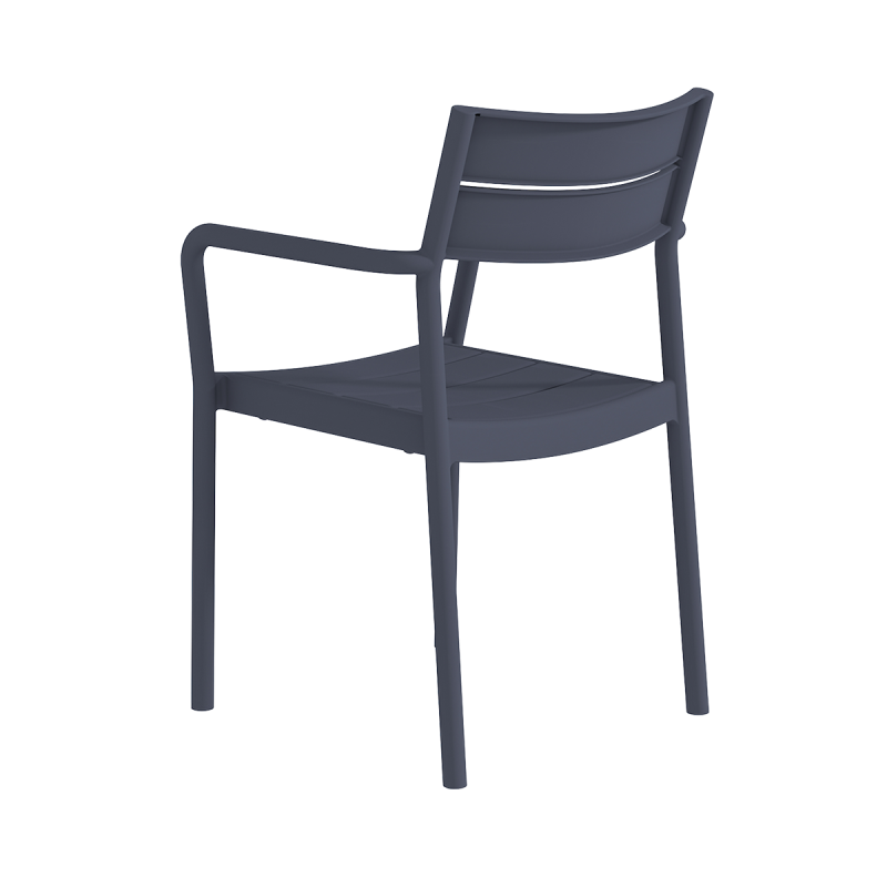 CAPRI ARM è una sedia outdoor progettata per spazi gastronomici moderni. La linea distintiva dello schienale con apertura orizzontale e i braccioli sagomati conferiscono un aspetto deciso e ordinato. La struttura appare leggera, garantendo al tempo stesso pieno comfort per l’utilizzatore. Questa sedia in plastica è ideale per dehors di ristoranti, aree bar e bistrot, oltre che come sedia da piscina in hotel.